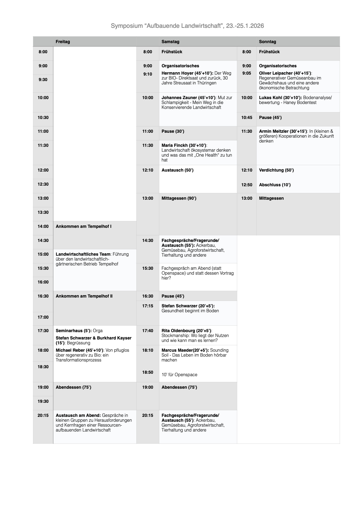 » Das Symposium war im wahrsten Sinne des Wortes mal wieder total aufbauend. Ein toller und "bodenfruchtbarer" Austausch zwischen Landwirten, Wissenschaftlern, Beratern sowie interessierten und engagierten Leuten zum Thema Aufbauende Landwirtschaft. In Zeiten wo es überall "knistert und teilweise schon brennt" ein unbedingtes Muss. Es hat unheimlich Spaß gemacht dabei zu sein, und es drehen sich mal wieder tausend Rädchen im Kopf. Man konnte viel Mut für die bevorstehenden Aufgaben sowie den viel zitierten und beschworenen Transformationsprozess in der Landwirtschaft schöpfen. Macht weiter so!! «